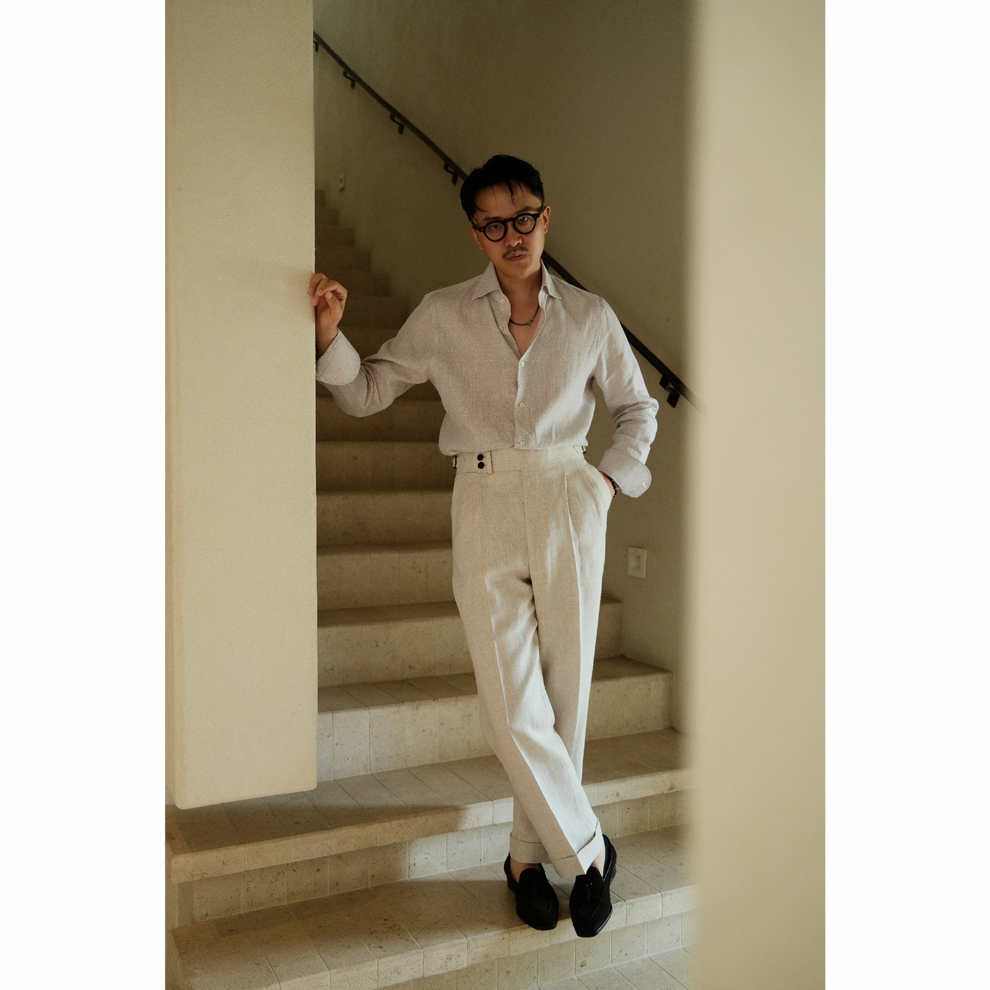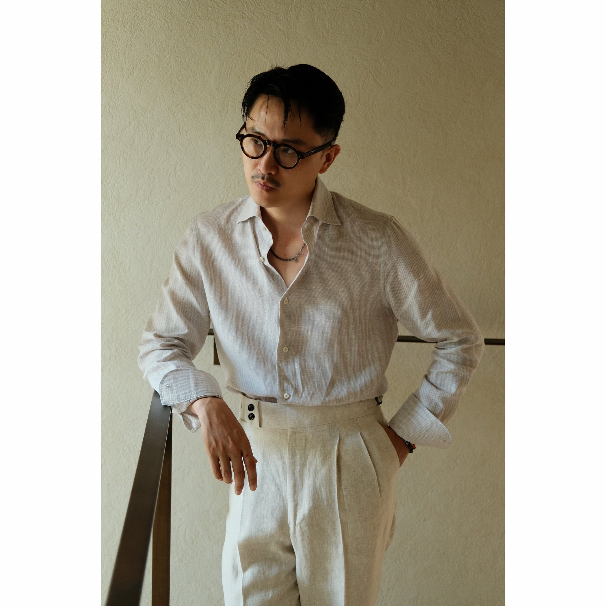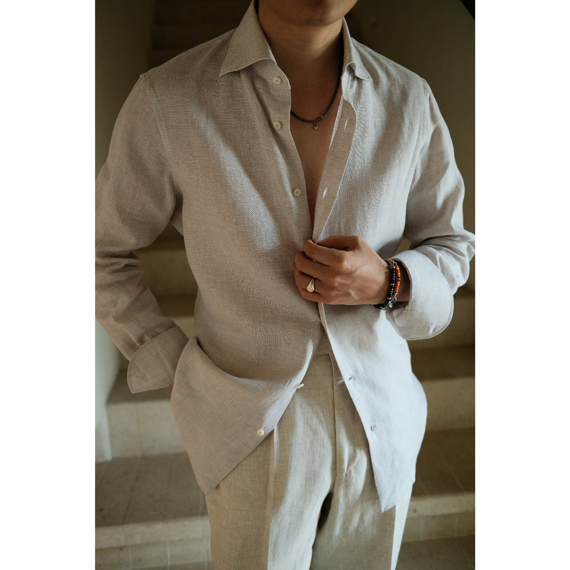 Ugentle Spread Collar Linen Shirt — Neutral