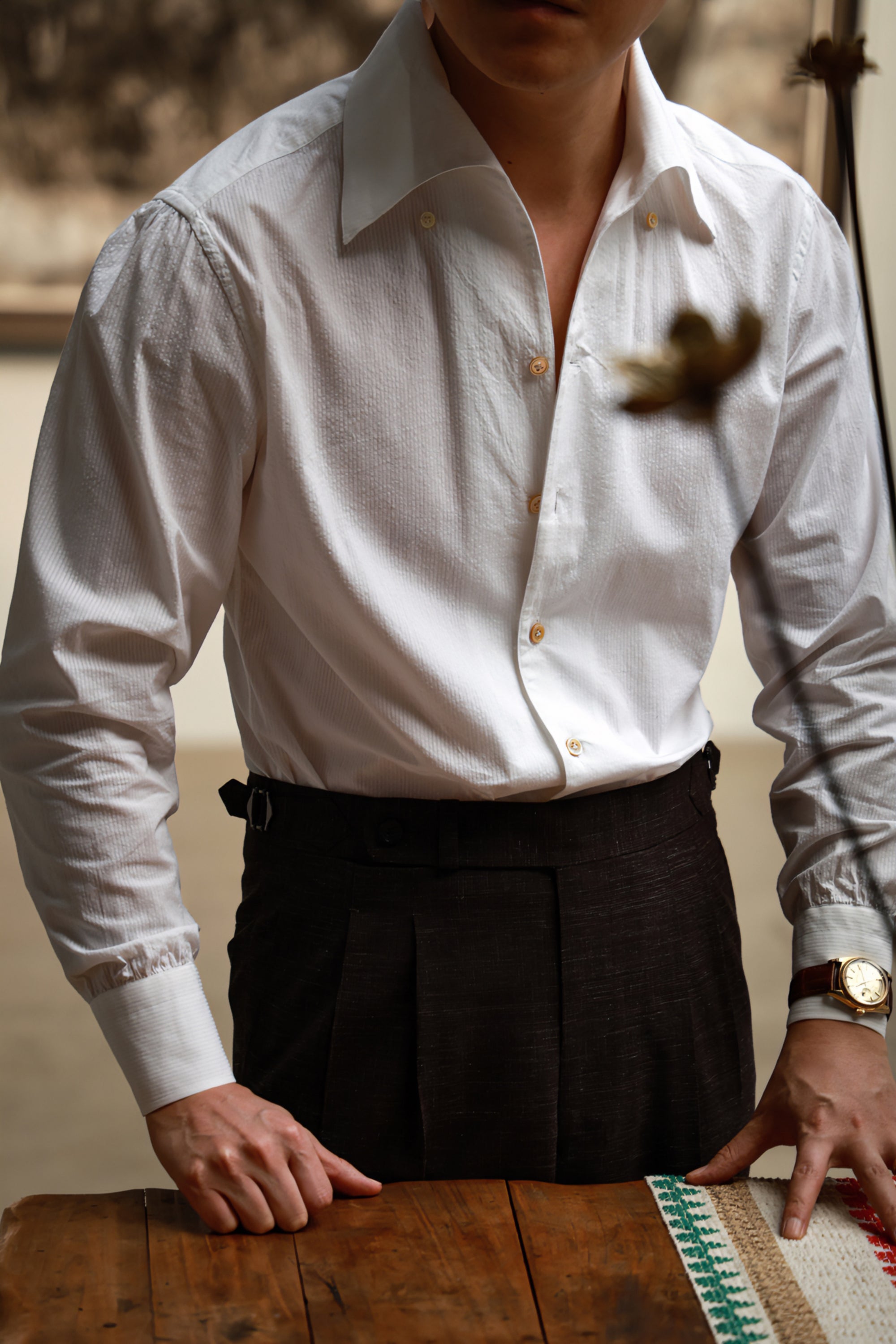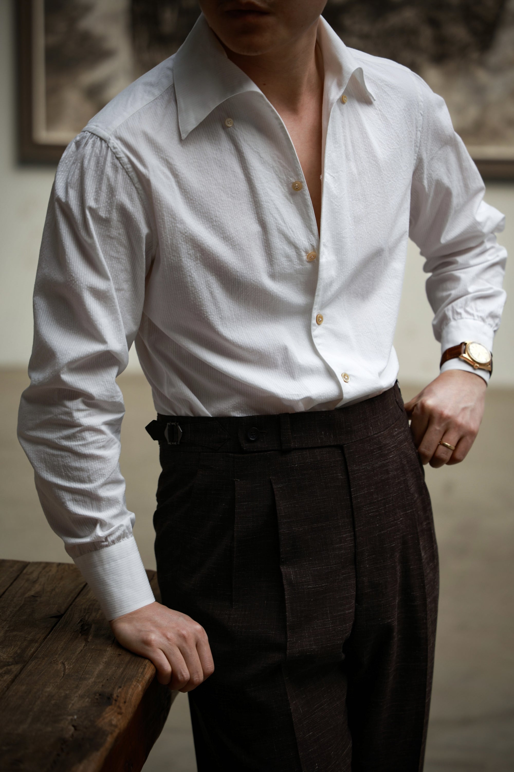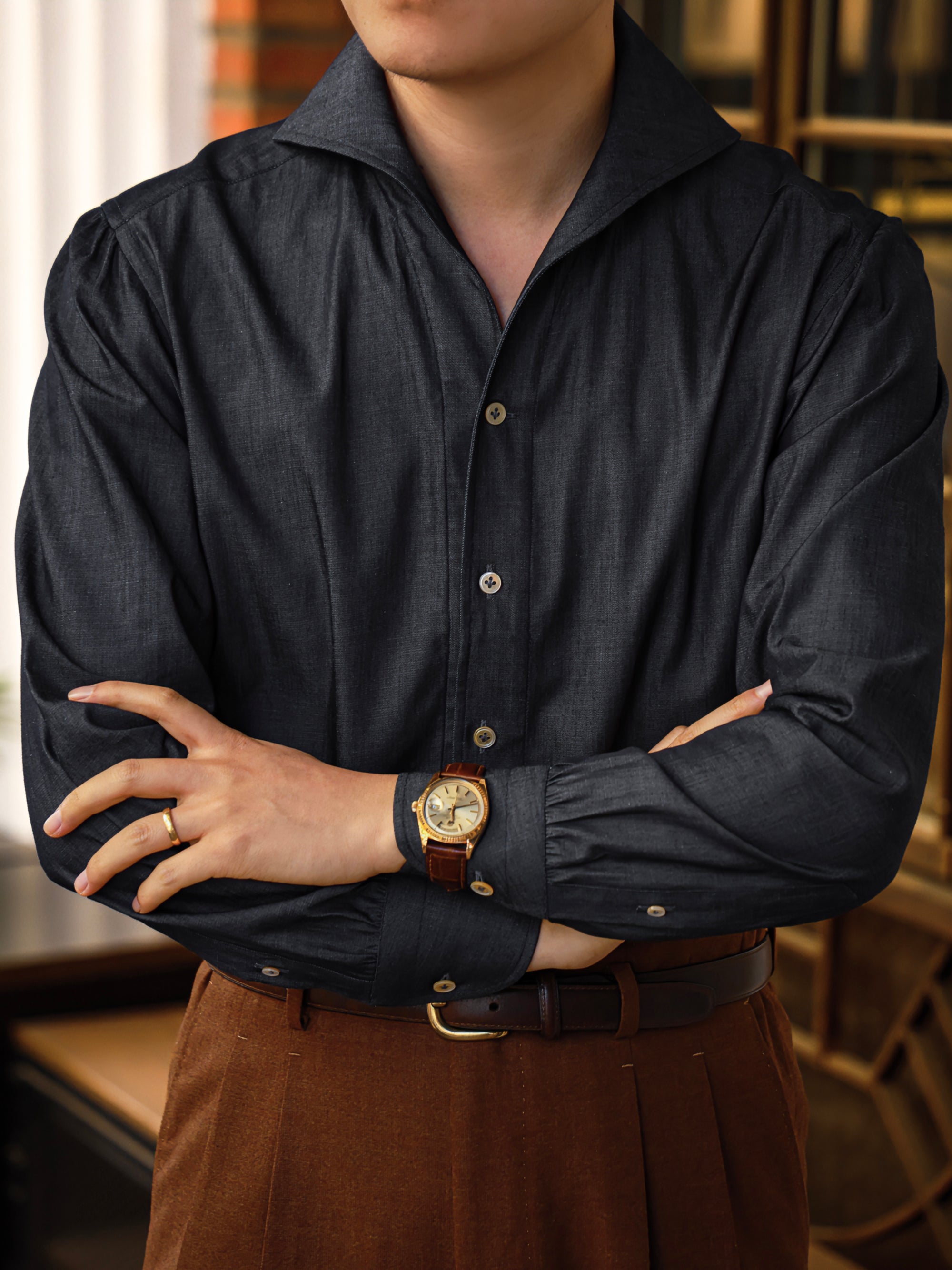 Ugentle Spread Collar Linen Shirt — Bagie