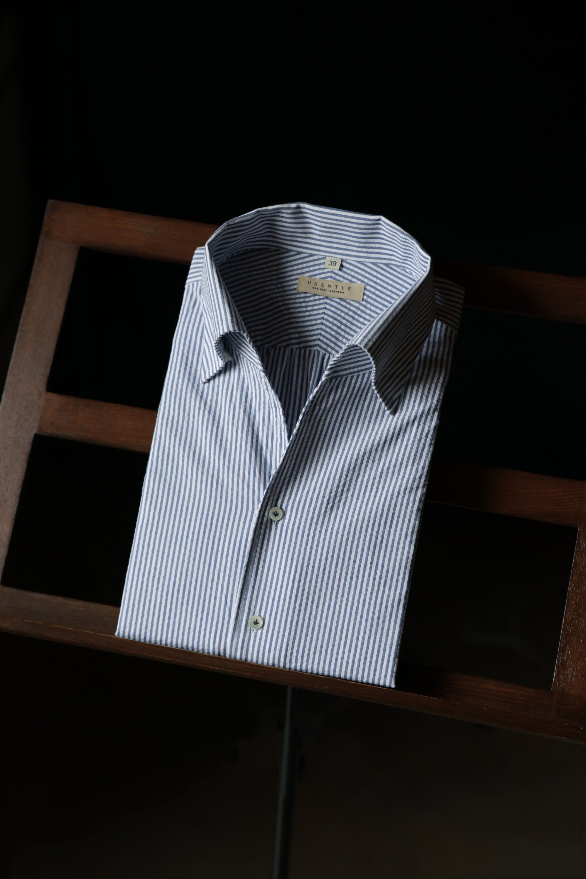 Ugentle One-piece Collar Shirt — Blue Pencil Stripe Seersucker