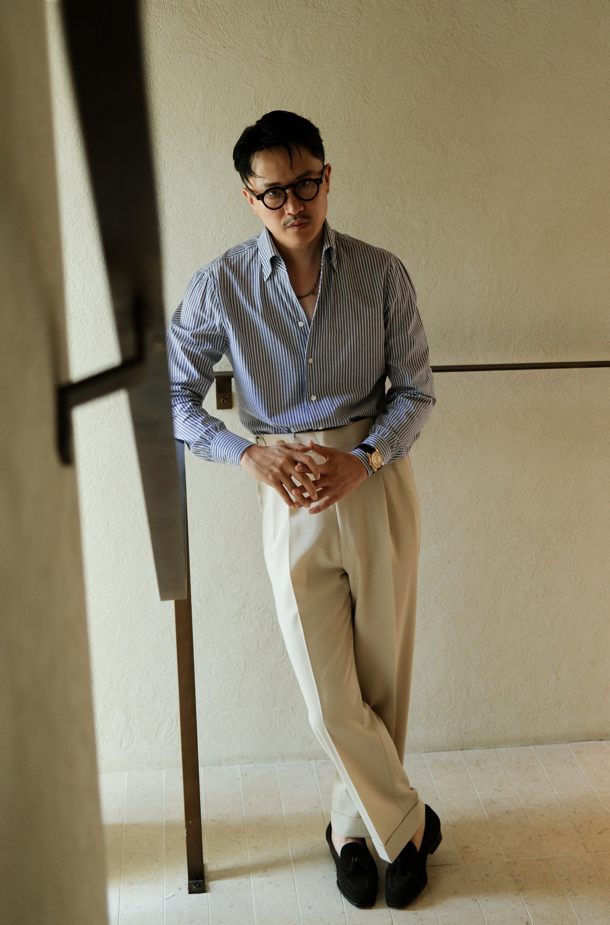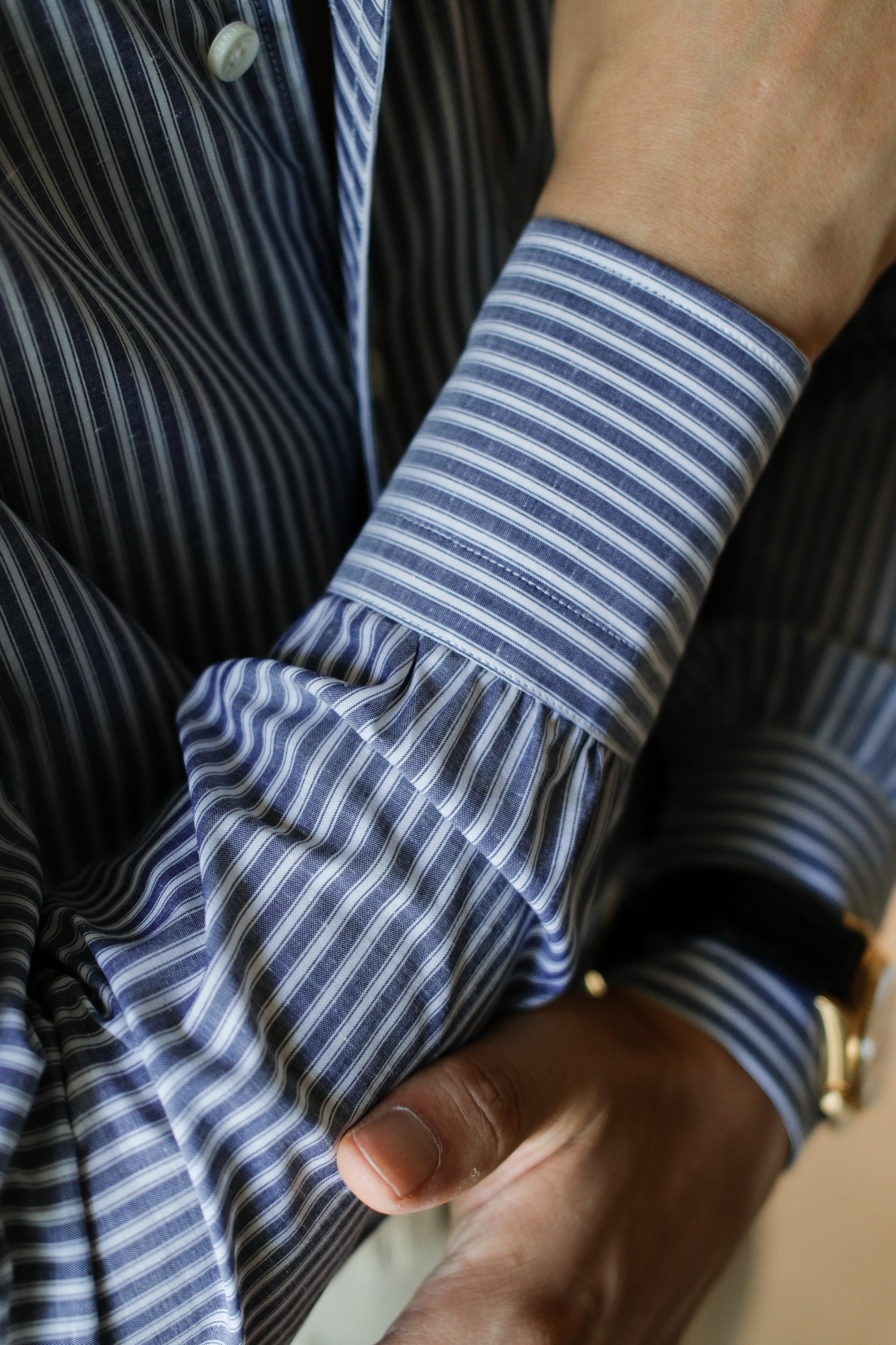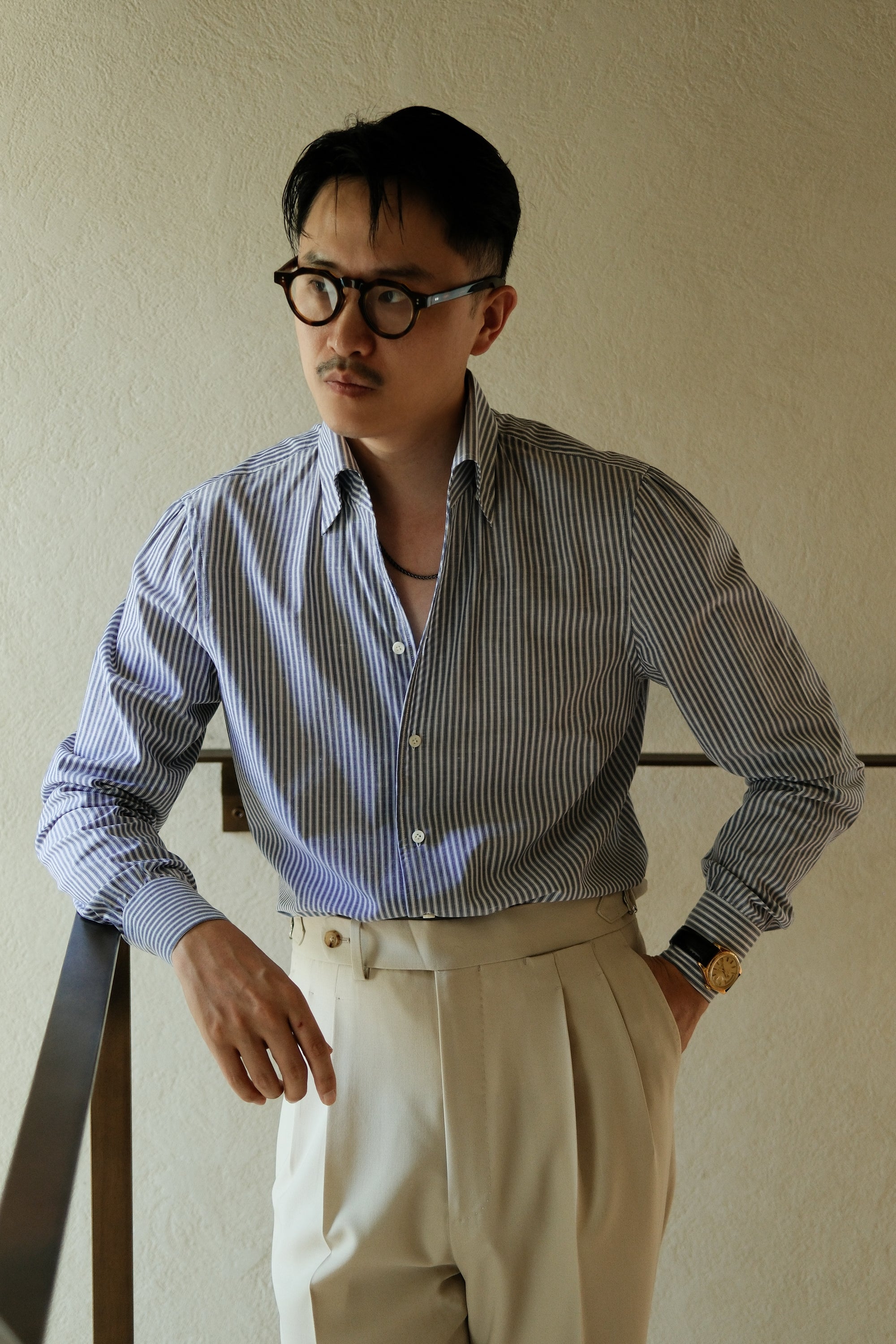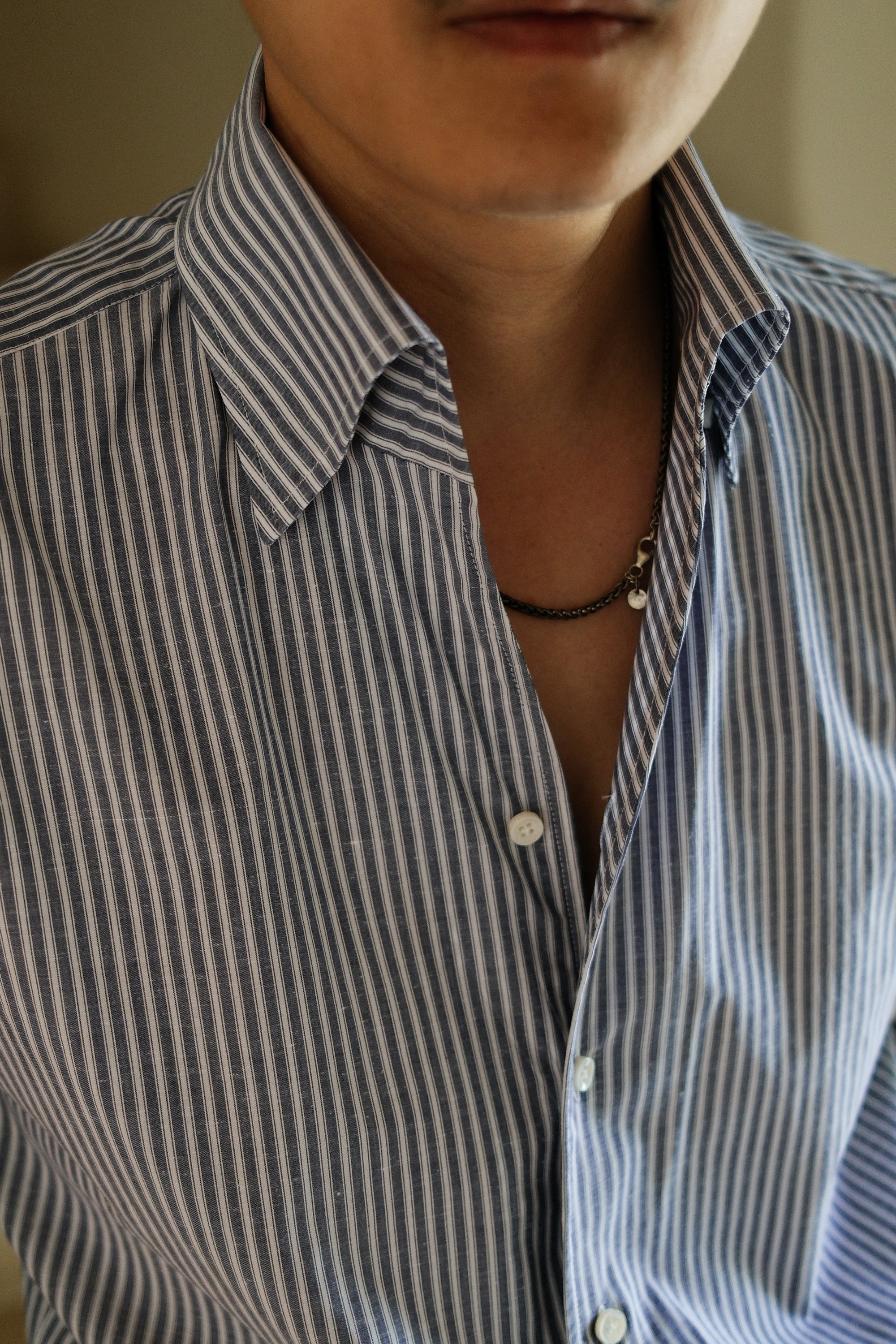 Ugentle One-piece Collar CANCLINI Shirt — Blue Pencil Stripe