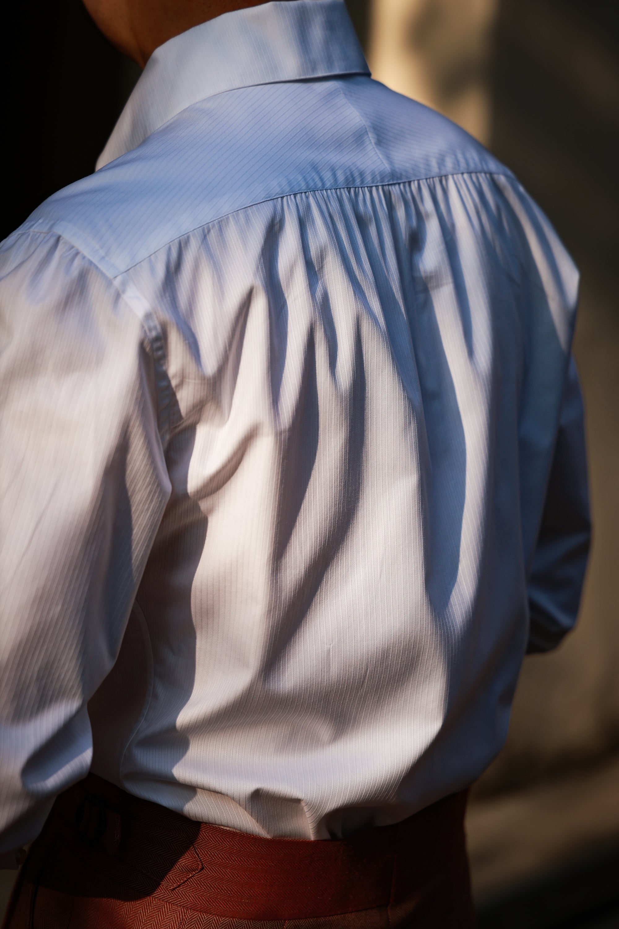 Ugentle Spread Collar Shirt — Glacier wide stripe