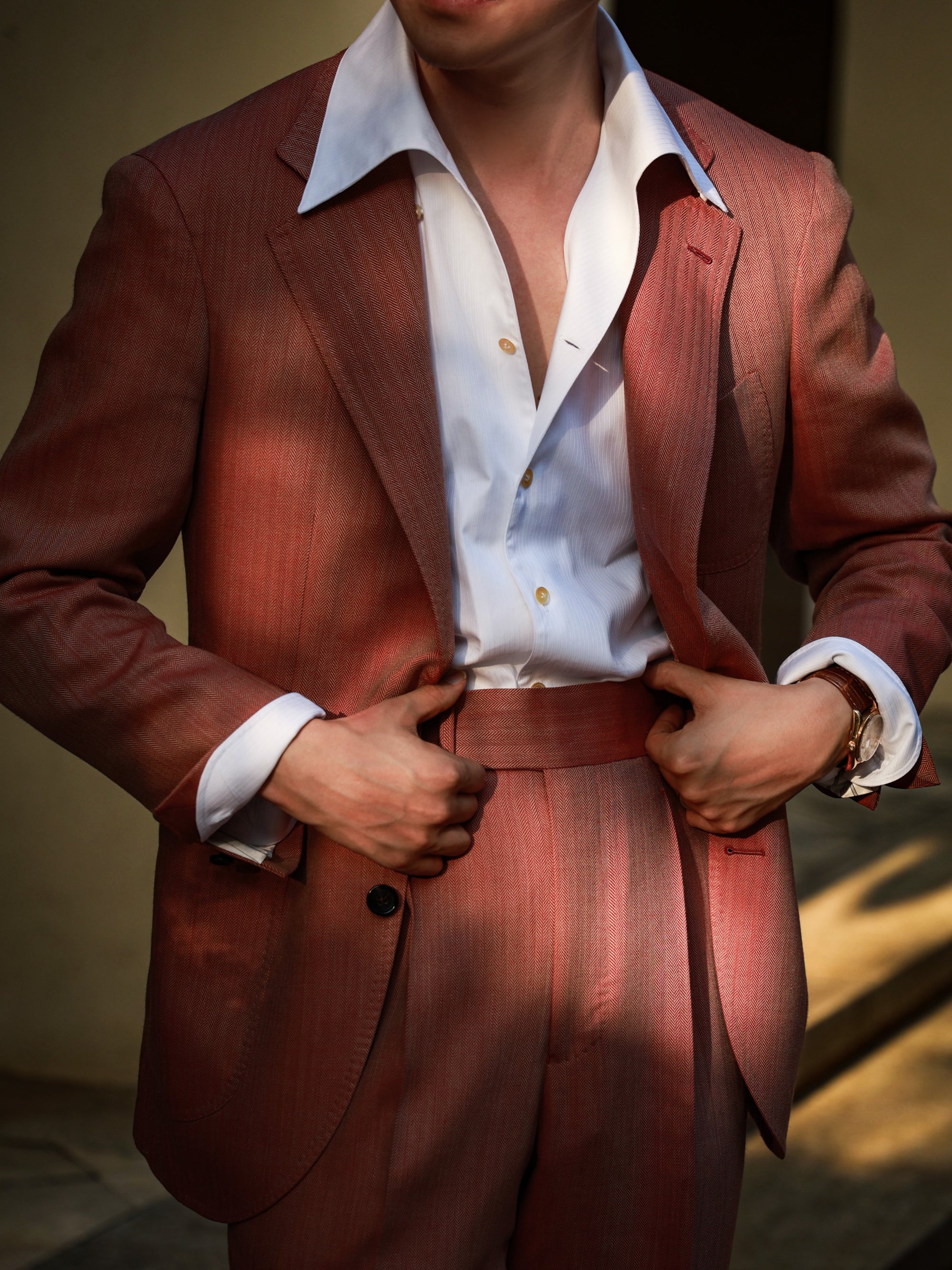 Ugentle Spread Collar Shirt — Pink wide stripe