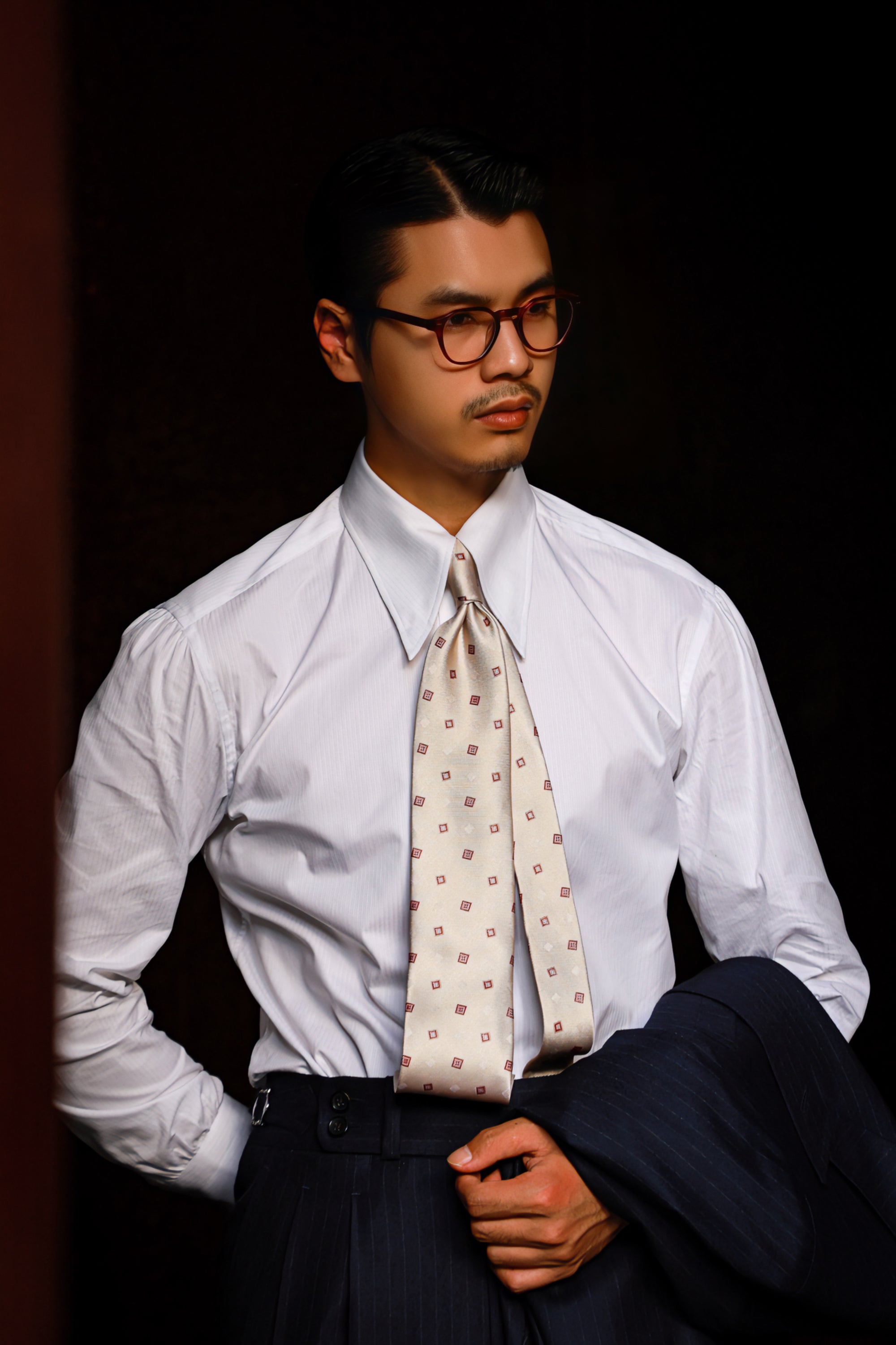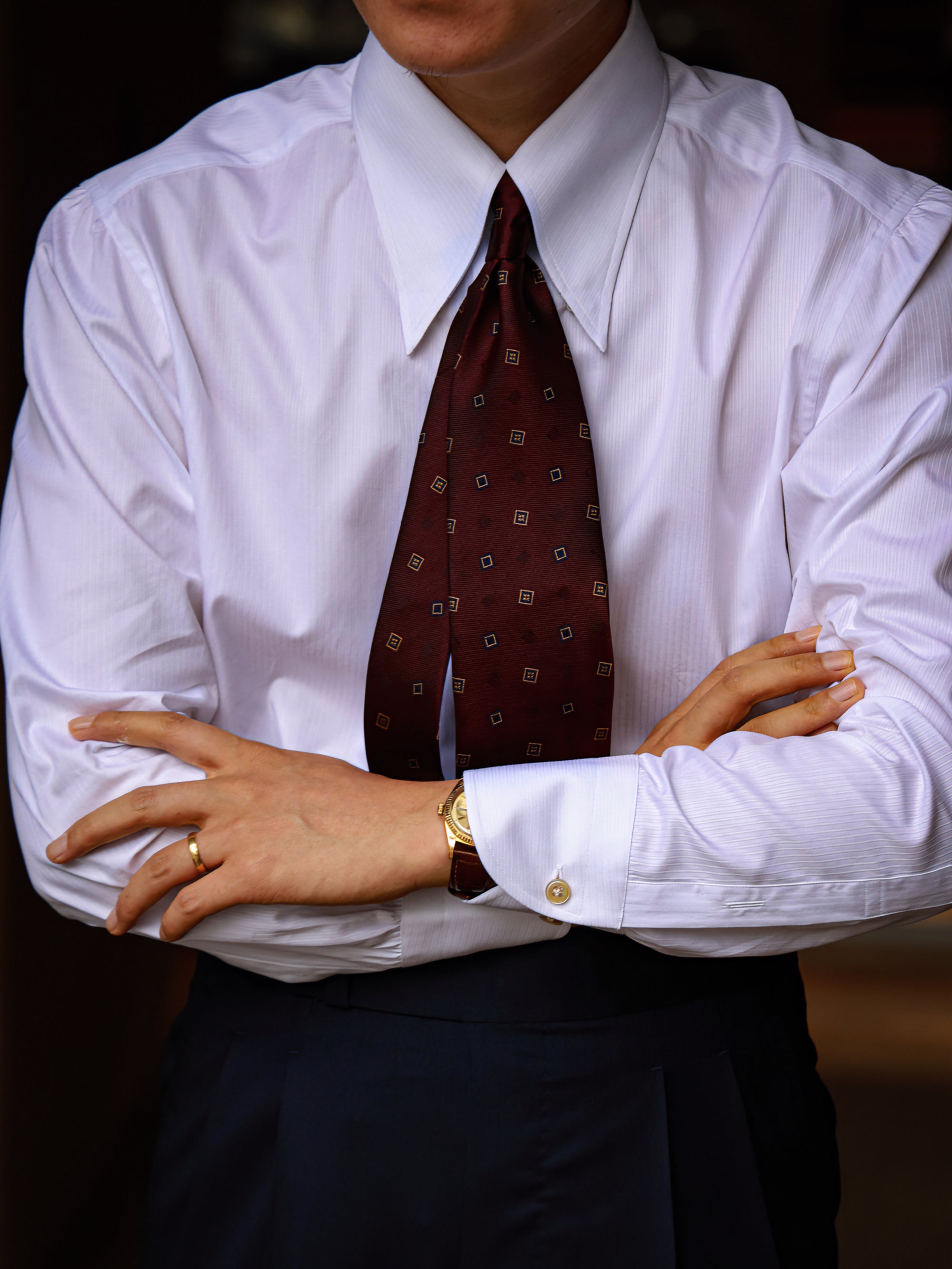 Ugentle Long Point Collar Shirt — Pencil Navy Stripe