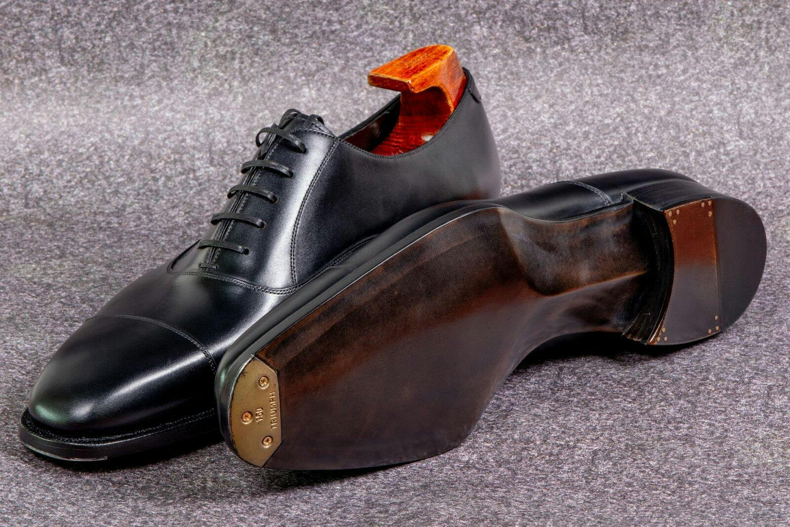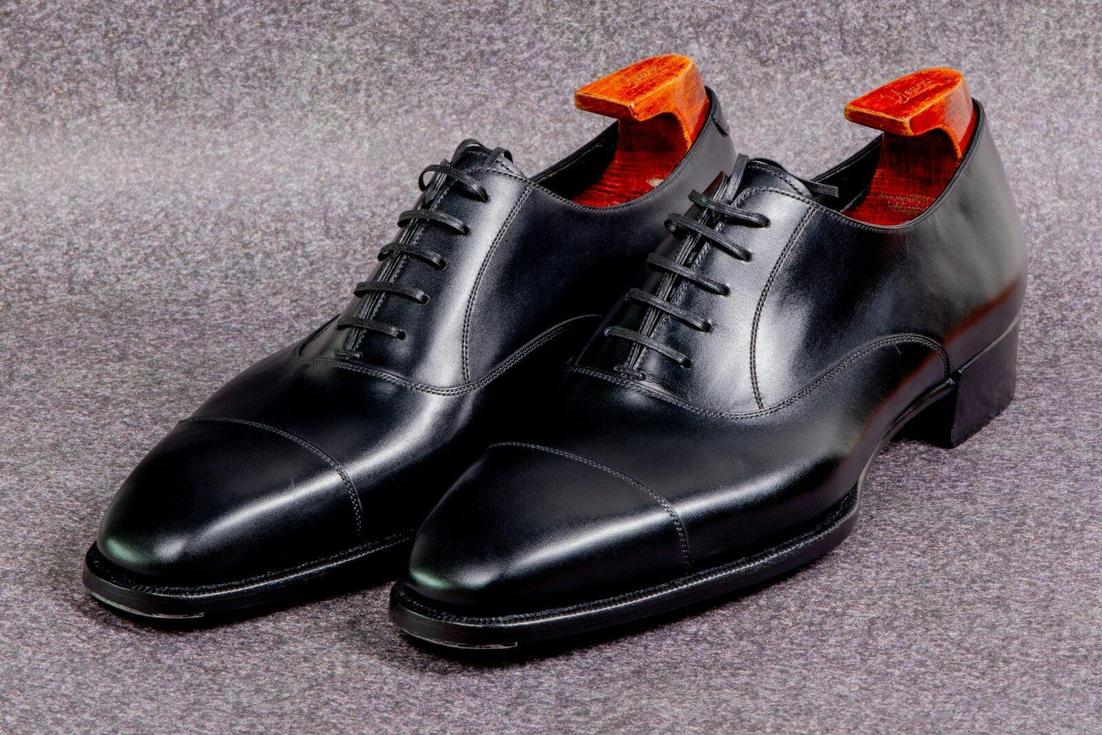 Classic black cap toe oxford in Black calf from Annonay tannery on our soft square toed last Y05.